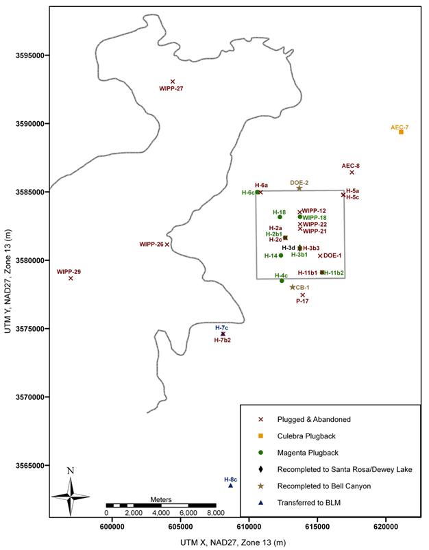 Salness, R.A. 2006. Basic Data Report for Well Plugging and Abandonment and Reconfiguration Activities for Fiscal Year 2005. DOE/WIPP 05-3326. Carlsbad, NM: U.S. Department of Energy.